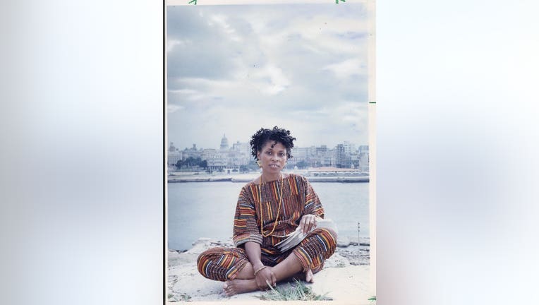Havana, Cuba: JoAnn Chesimard, aka Assata Shakur, holding the manuscript of her autobiography with Old Havana, Cuba, in the background on October 7, 1987. (Photo by Ozier Muhammad/Newsday RM via Getty Images)