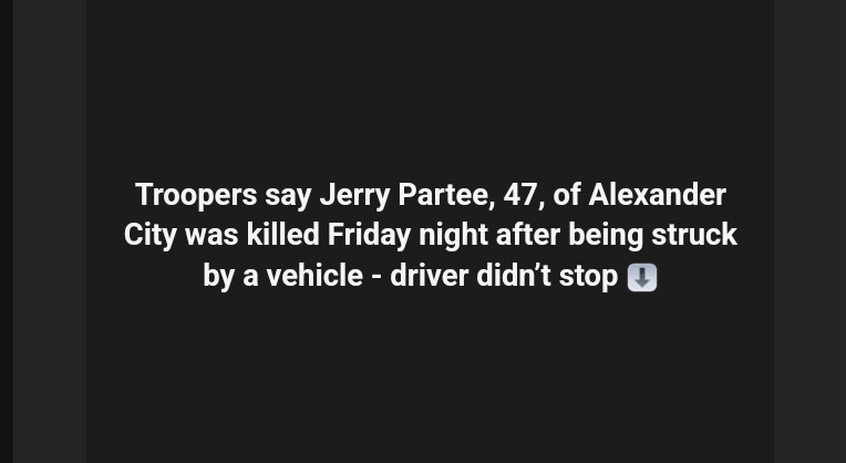 Partee was standing in the roadway when the unknown vehicle struck him, inflicting fatal injuries which led to his death at the scene. Troopers said the driver did not stop and fled, leaving behind a family and a community seeking accountability.