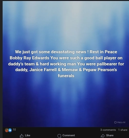 Bobby Ray Edwards (1951–2025) leaves behind his family, friends, and neighbors who will carry forward his legacy of kindness. May he rest in peace, and may the comfort of collective remembrance ease the ache of his absence.