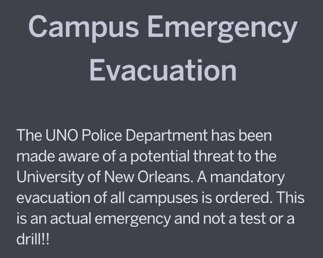 The usually vibrant University of New Orleans (UNO) campus fell eerily silent Friday morning as police alerts blared into students’ phones, demanding an immediate evacuation. University officials and campus police, acting on what they described as a “potential threat,” urged everyone — students, faculty, and staff — to leave all university grounds without delay. This came as emergency responders also placed a nearby school on lockdown amid swirling uncertainty and heightened tension in the heart of Louisiana’s largest city.