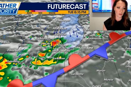 CHICAGO – Today the Chicago area will have highs around 80 degrees under partly sunny skies. There is a chance for a shower early and p.m. storms. What’s next: Tomorrow will be a lot cool...