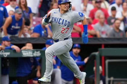 article CINCINNATI, OHIO – SEPTEMBER 19: Seiya Suzuki #27 of the Chicago Cubs runs to home plate in the first inning against the Cincinnati Reds at Great American Ball Park on September 19, 2025...