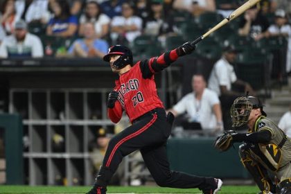 article CHICAGO, ILLINOIS – SEPTEMBER 19: Miguel Vargas #20 of the Chicago White Sox hits a two run home run against the San Diego Padres during the first inning at Rate Field on September 19, 2...